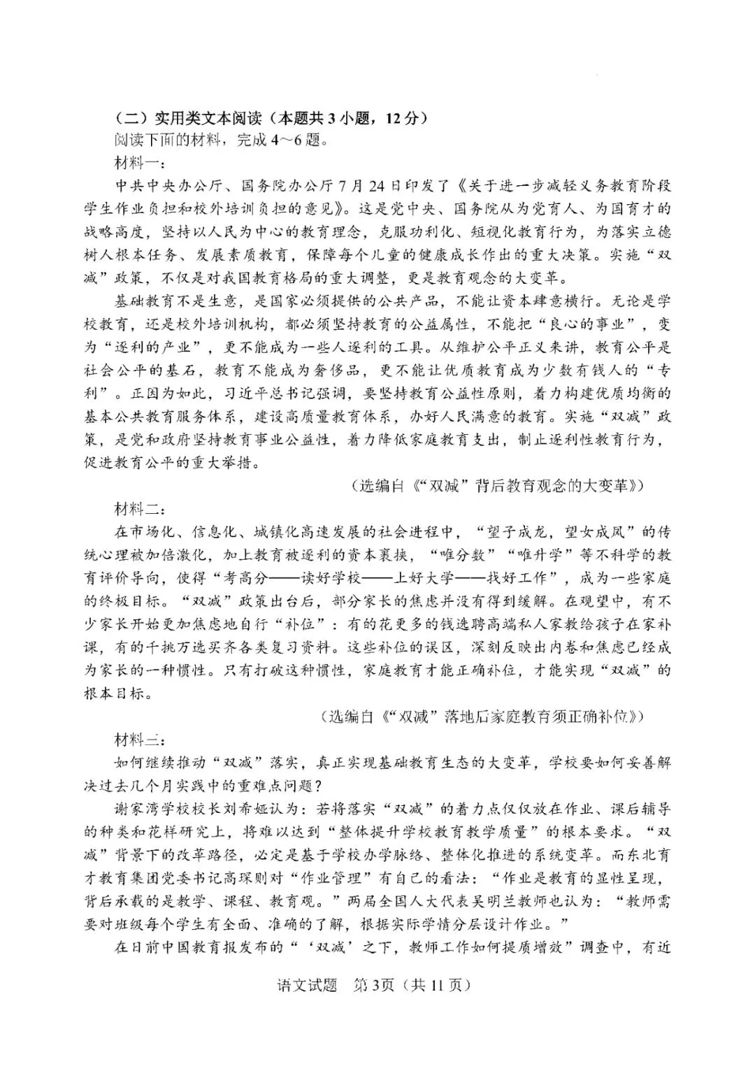 2022全国新高考II卷(新高考二卷)语文试题及答案
