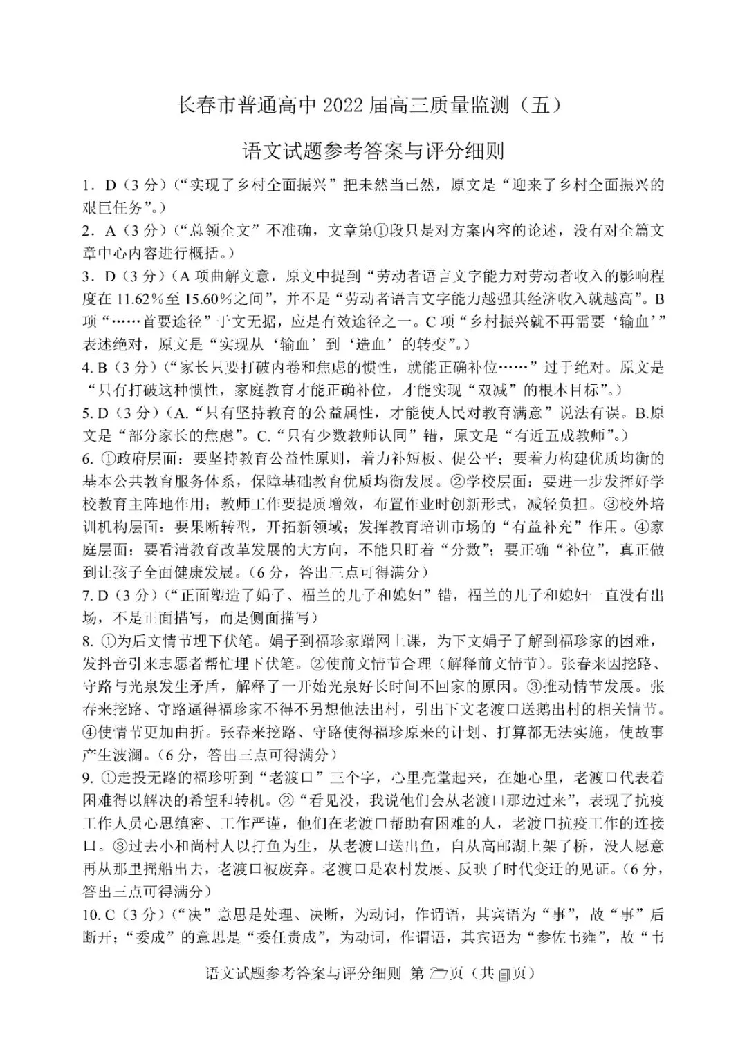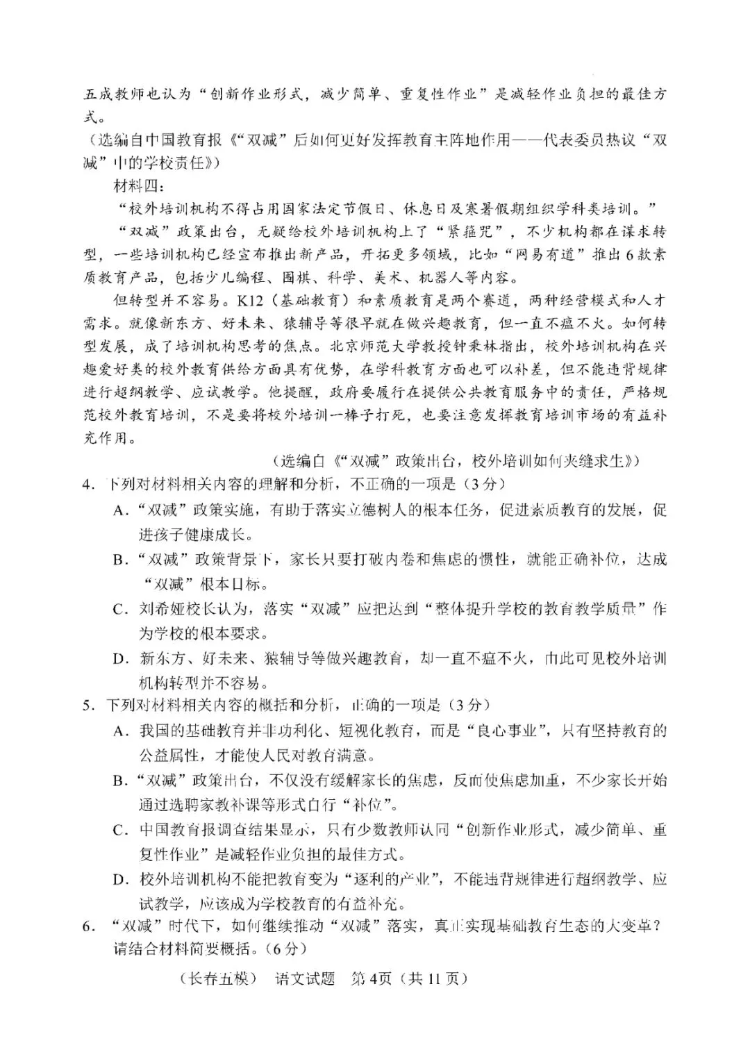 东北师大附中2024届高三下学期第六次模拟考语文试题及答案