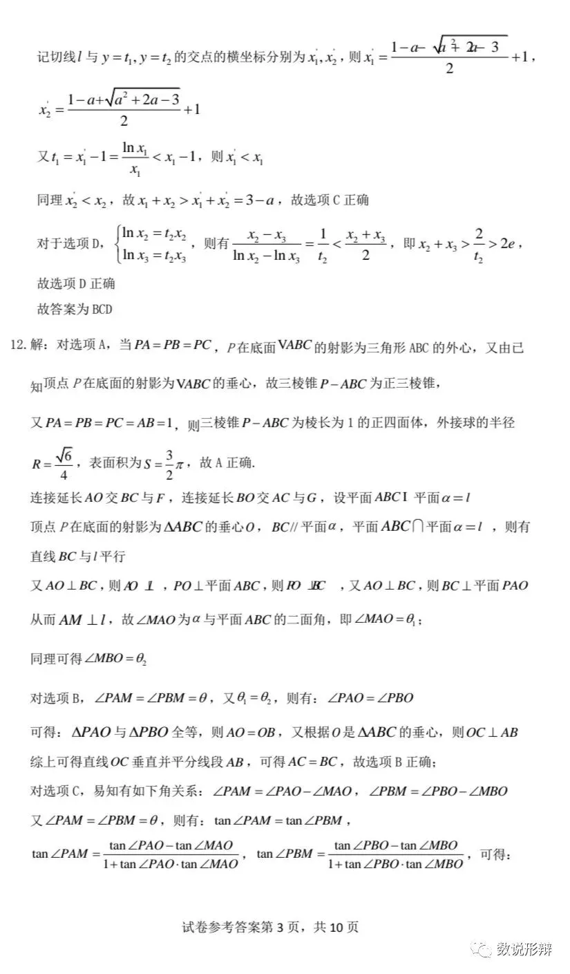 2023高三四省联考数学试题答案解析