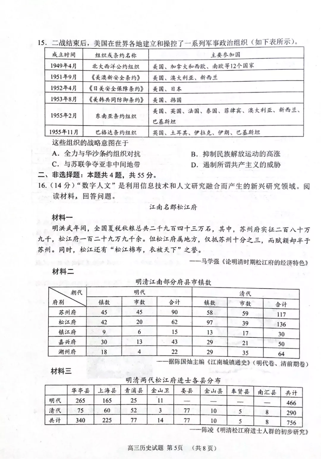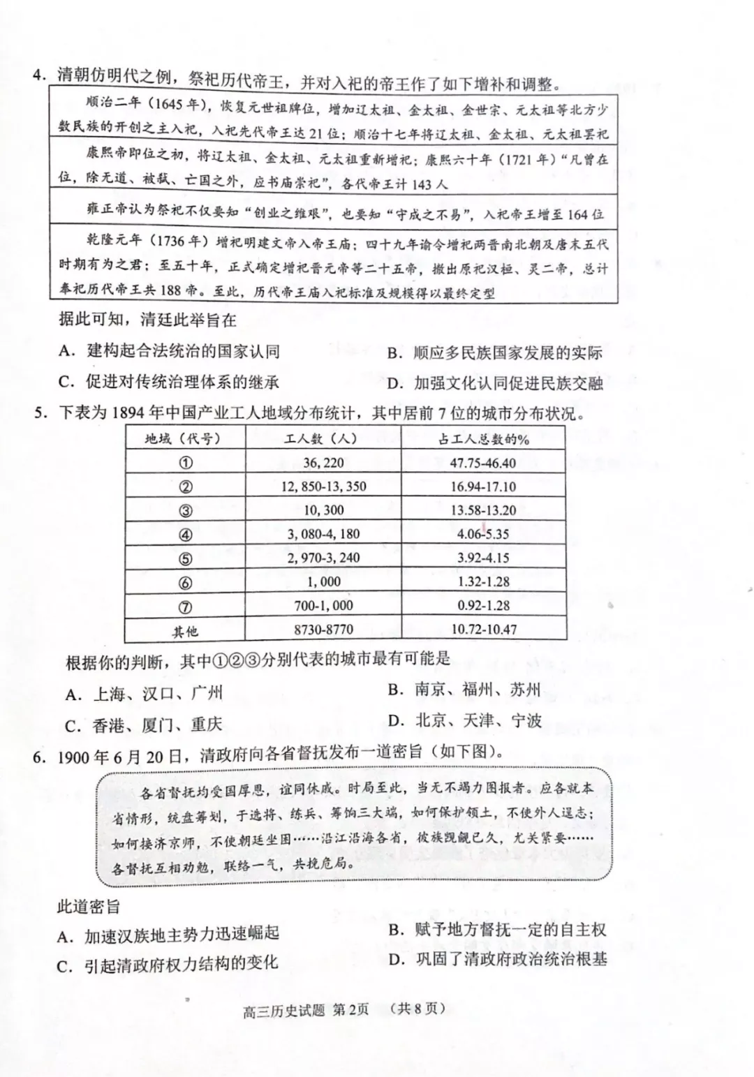 2022届山东省日照高考三模历史试题及答案
