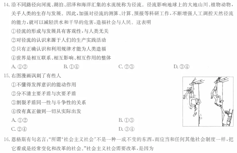 湖北五市州2024年7月高一期末联考政治试题及答案