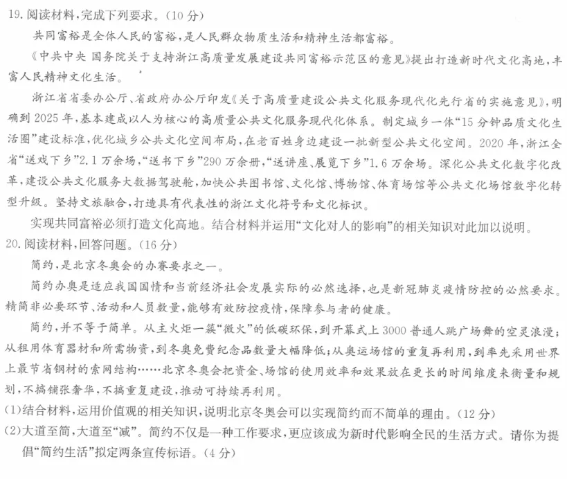 湖北五市州2024年7月高二期末联考政治试题及答案
