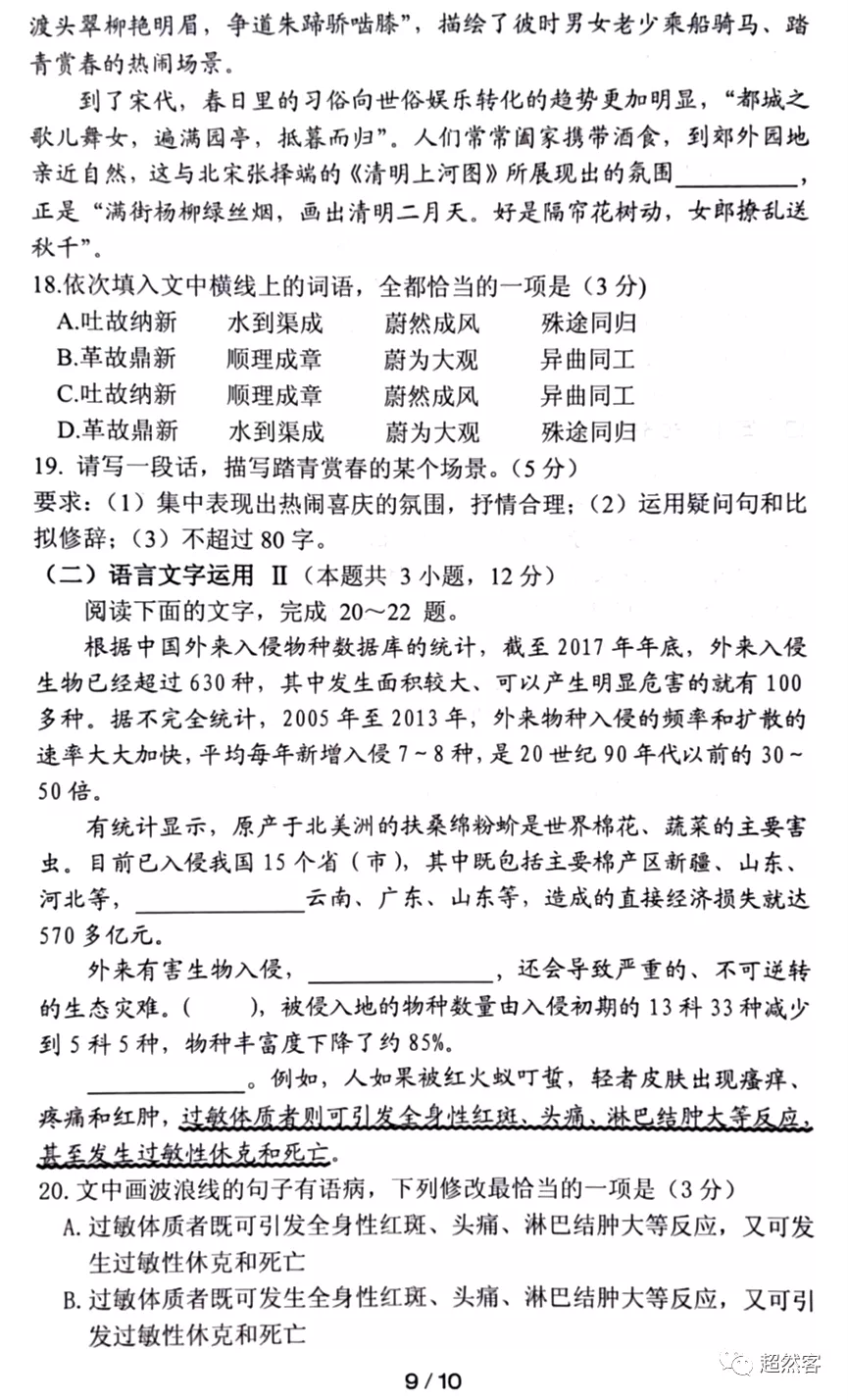 19.请写一段话,描写踏青赏春的某个场景。(5 分)