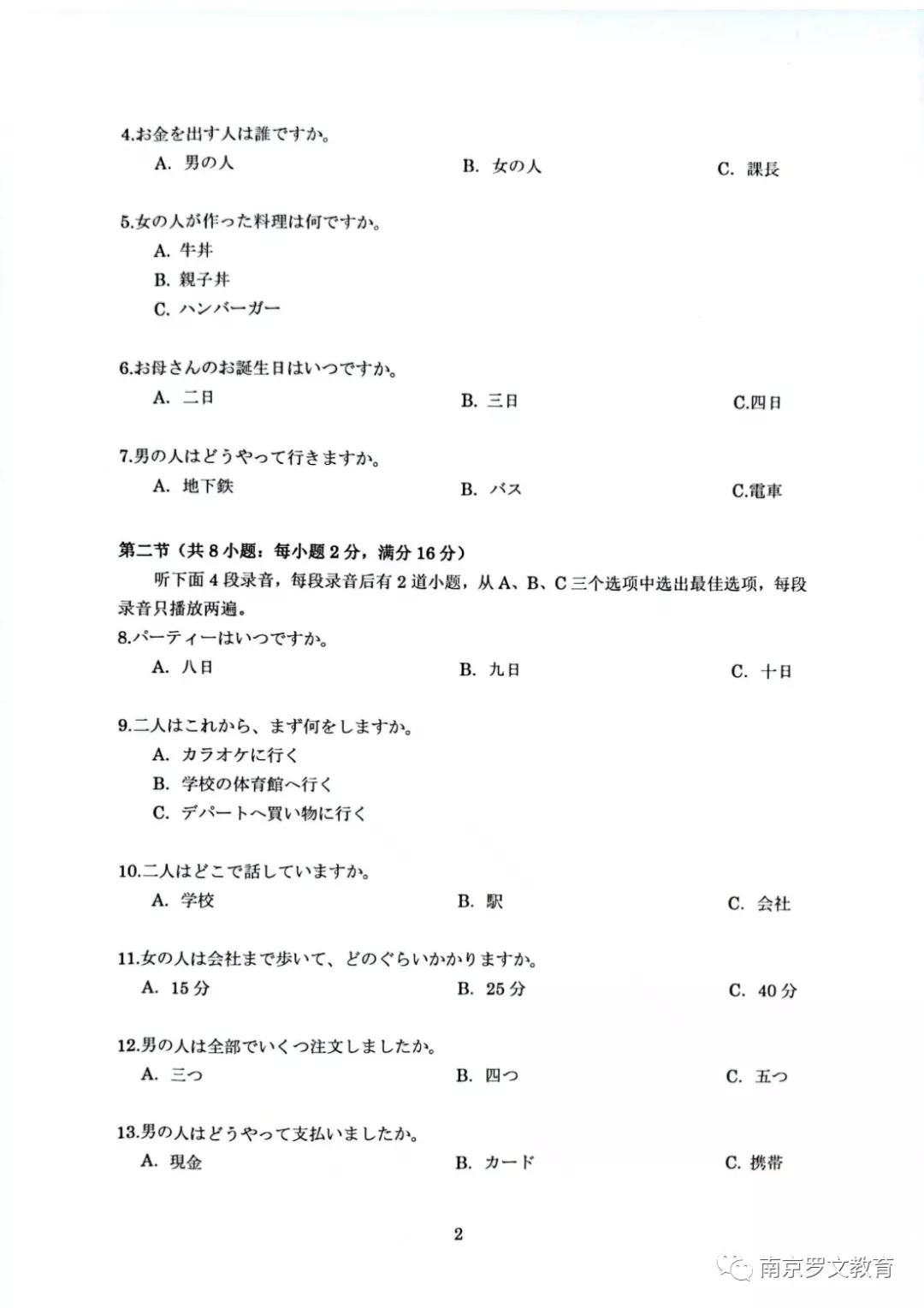 苏锡常镇2022届高三二模日语试卷及答案