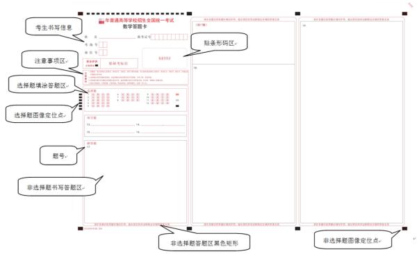 1.考生信息:①考生书写信息区(含由考生本人书写的姓名、准考证号、考场号、座位号等);②贴条形码区;③注意事项(考生必须仔细阅读其内容)。