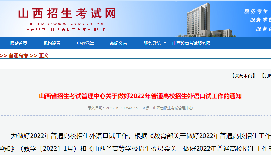 为做好2022年普通高校招生外语口试工作,根据《教育部关于做好2022年普通高校招生工作的通知》(教学〔2022〕1号)和《山西省高等学校招生委员会关于做好2022年普通高校招生工作的通知》(晋招委〔2022〕3号)精神以及疫情防控常态化下高考组织管理要求,经研究,我省2022年普通高考的英语口试继续采取计算机考试模式(简称机考)进行。现将有关事项通知如下: