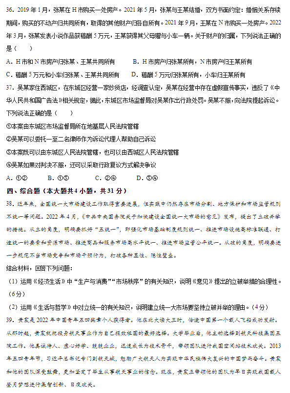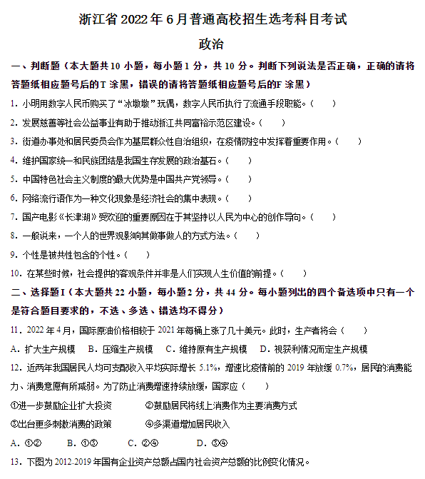 2022年浙江高考政治试卷真题及答案解析(已更新)