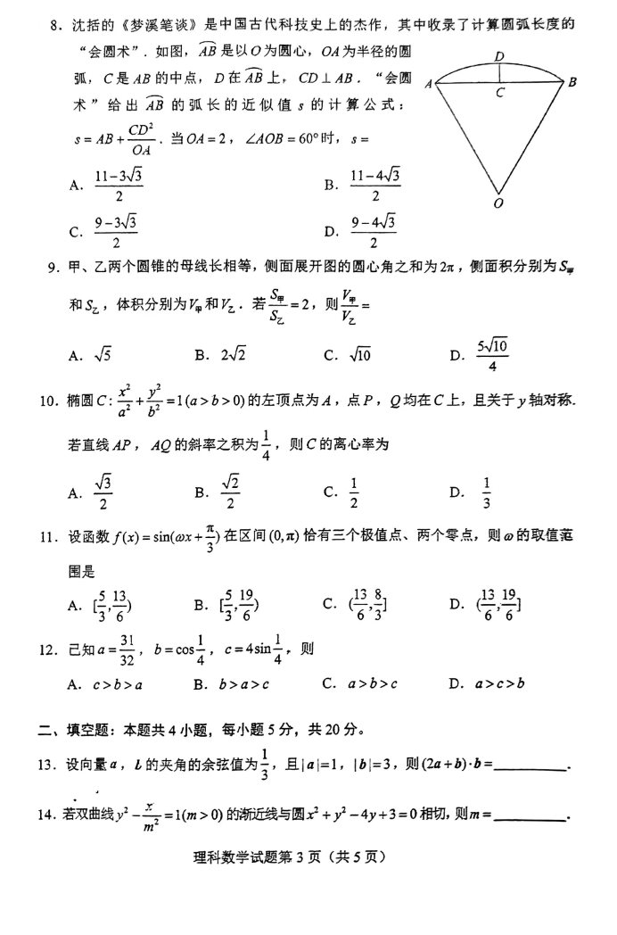 2022年高考全国乙卷数学(理)试卷真题与答案解析