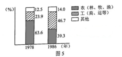 图5是1978年与1986年北京郊区男户主职业占比变化情况。这一变化的产生主要是由于( )