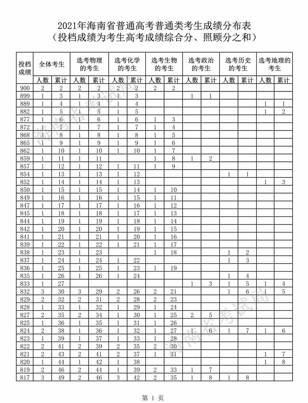 下面为同学们整理出2021年海南高考一分一段统计表,以做为对比和参考。