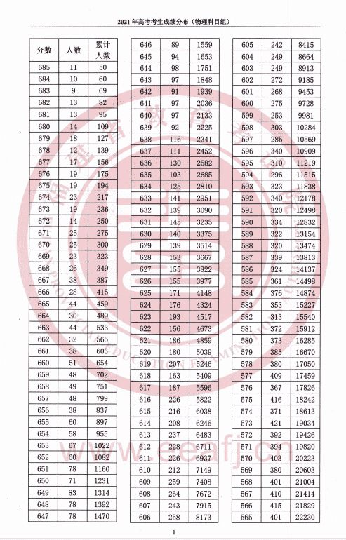 下面为同学们整理出2021年福建高考一分一段统计表,以做为对比和参考。