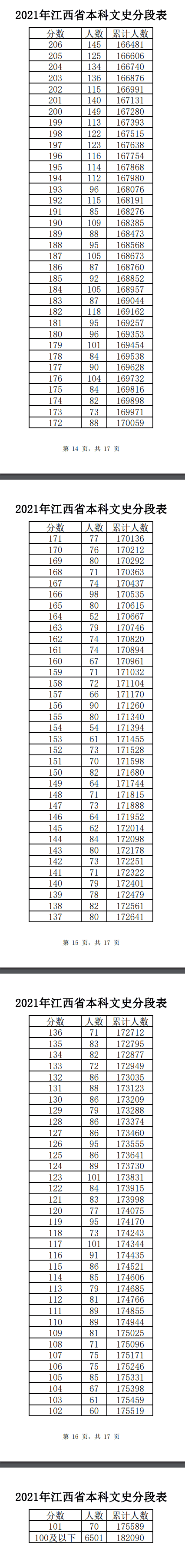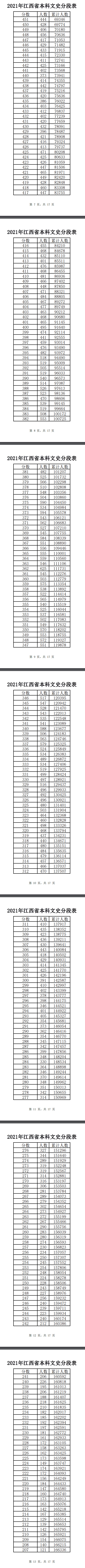 2021年江西高考一分一段表