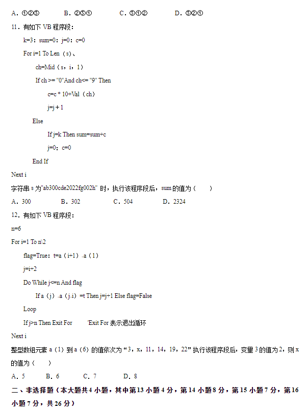 2022浙江高考技术试卷真题及答案解析(浙江卷)