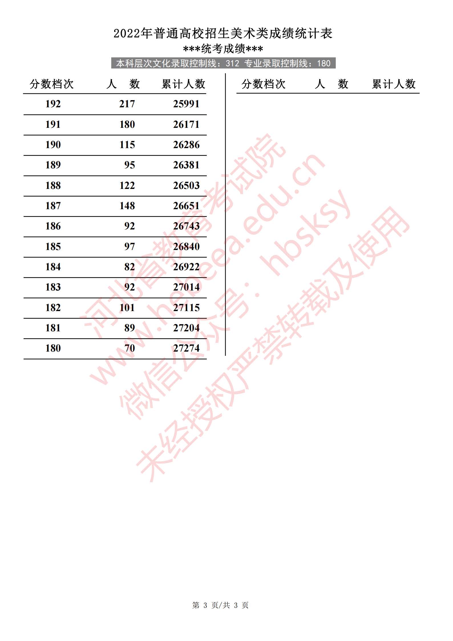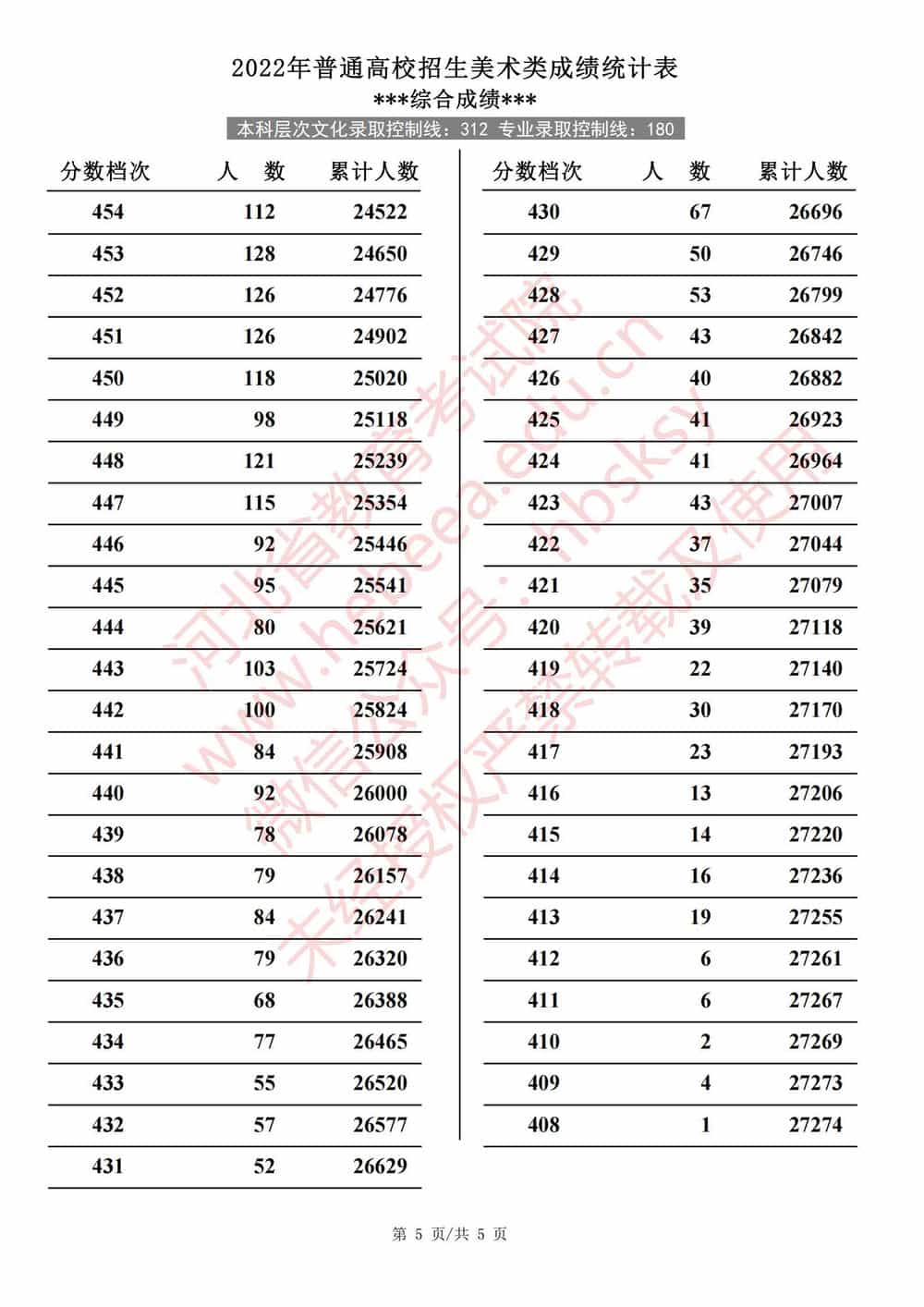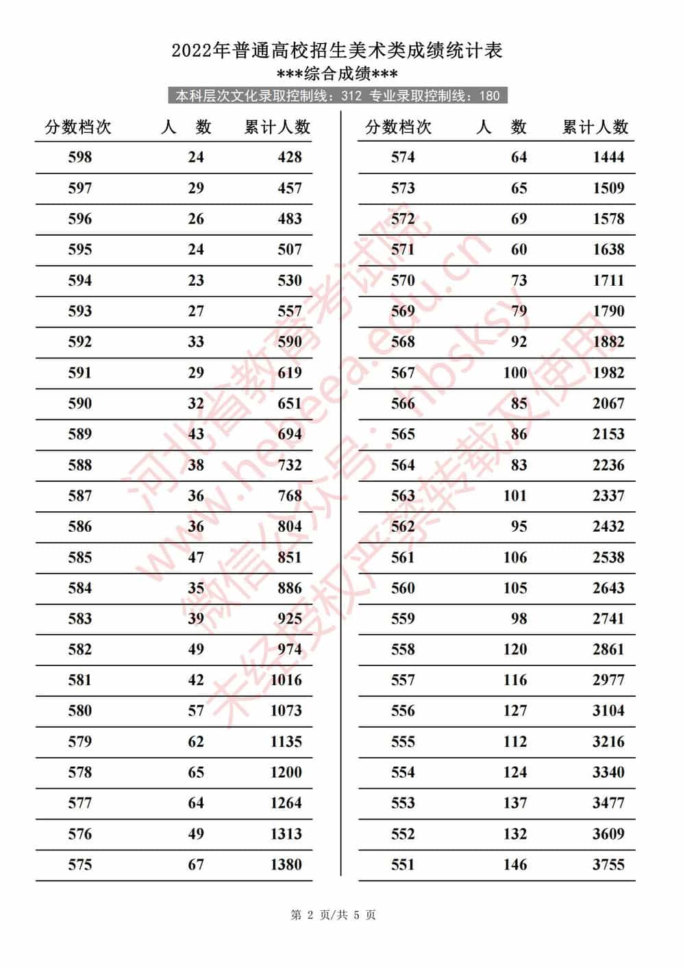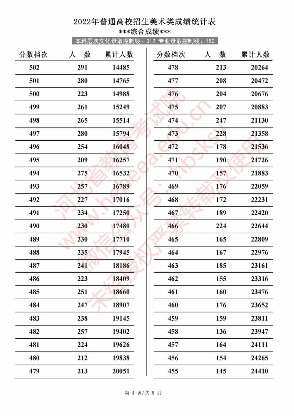 2022年河北高考美术类成绩一分一段统计表及成绩分段排名(统考+综合)