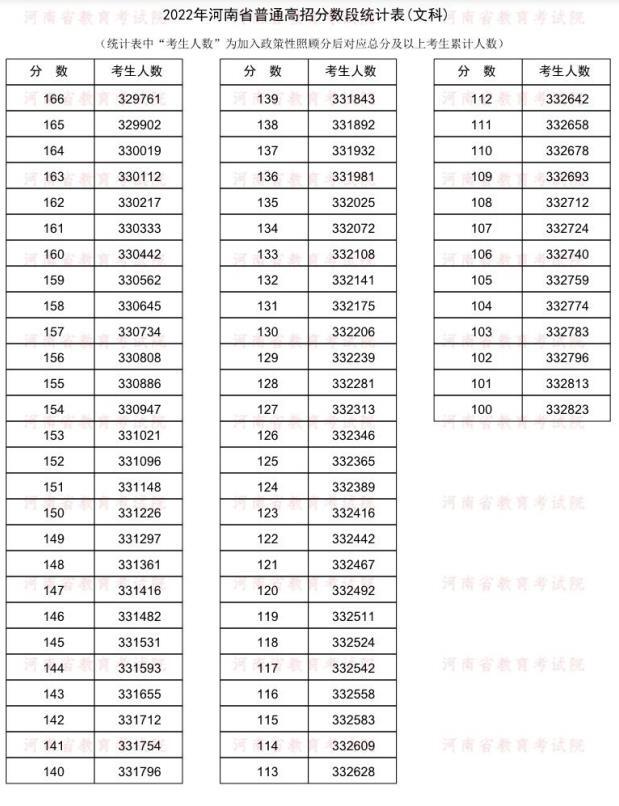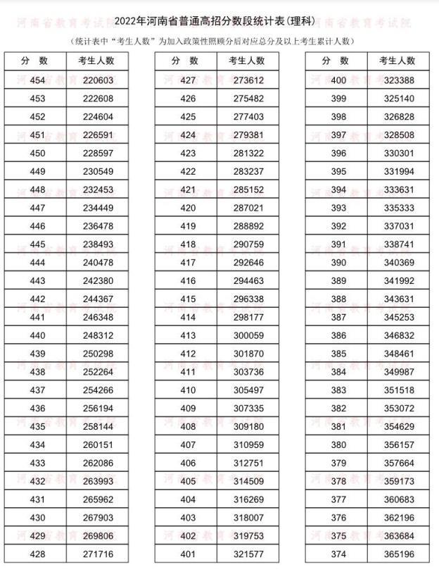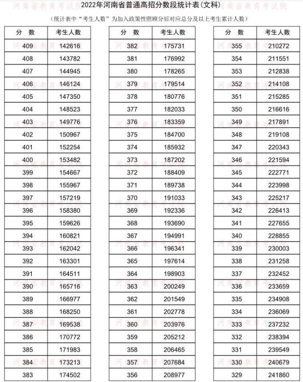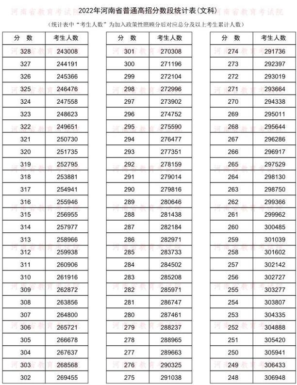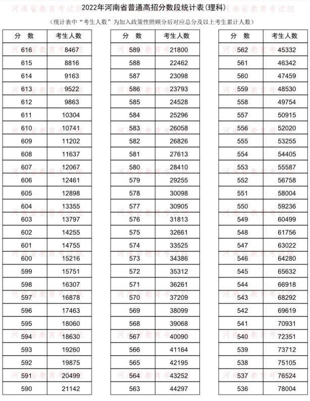 2022年河南高考一分一段表 河南高考成绩排名2022