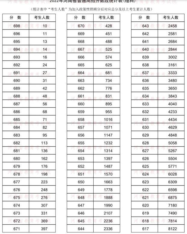 2022河南高考各批次录取分数线已发布,其中同学们最关心的是2022年河南高考文理科成绩一分一段统计、分段位次排名等相关信息,本文将为为大家整理2022年河南高考文理科成绩一分一段表统计情况,供考生查询参考。