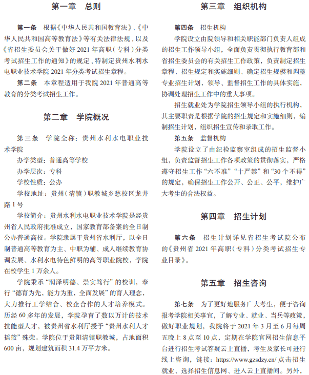 贵州水利水电职业技术学院招生章程
