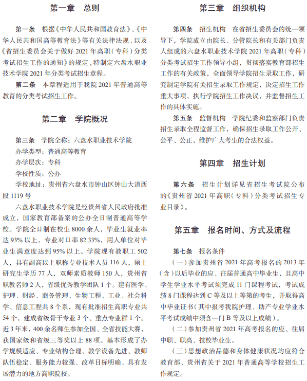 六盘水职业技术学院是经贵州省人民政府批准成立,国家教育部备案的公办全日制普通高等学校。学院现占地面积500余亩,建筑面积16.13万平方米。拥有纸质藏书48.9万册,电子图书65万册,多媒体教室108间。