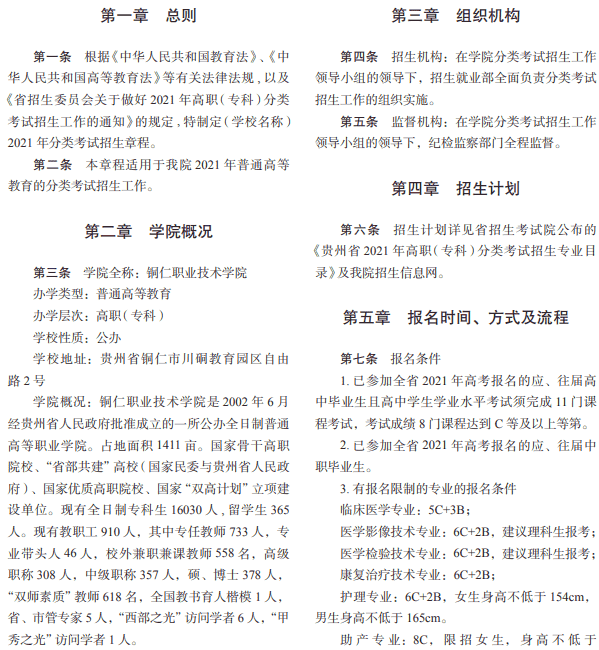 铜仁职业技术学院是2002年6月经贵州省人民政府批准,由铜仁地区农业学校、卫生学校、财政学校、商业学校、高级职校组建成立的一所公办全日制普通高等职业学院。2009年,学院整体搬迁至川硐镇新校区,新校区占地面积1160亩。