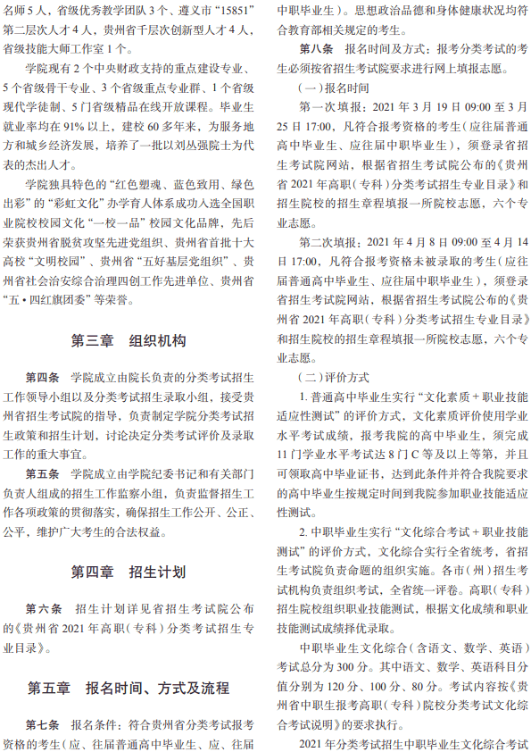 应往届高中毕业生:一是通过当年全国普通高等学校招生考试报名之后,参加我院当年3月份左右组织的分类招生考试,经考核合格后由学院将录取名册上报省招生考试院审核备案;二是参加全国普通高考,填报学院专业志愿,学院按专科批次结合分数与志愿进行录取。