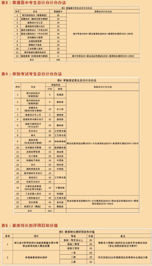 ①学校根据考生的高中学业水平考试成绩、浙江省高校招生职业技能考试有效成绩,以及按招生专业要求组织综合素质测试进行评价。