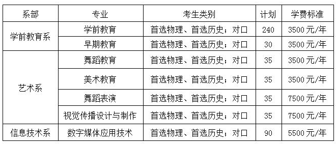 2021年长沙幼儿师范高等专科学校单招专业及招生计划