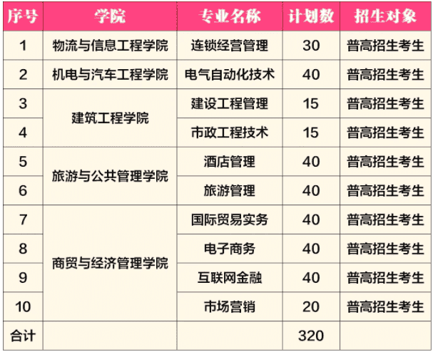 第六条 经浙江省招生主管部门批准,学校2021年面向浙江省提前招生计划320名。(见下表)