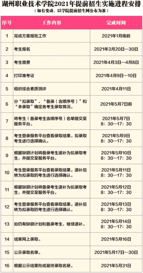 附件:湖州职业技术学院2021年提前招生实施进程安排