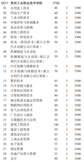 贵州工业职业技术学院专业及计划