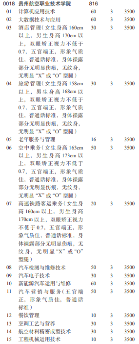 注:第一列为代码,第二列为院校专业,第三列为计划,第四列为学制,第五列为学费。