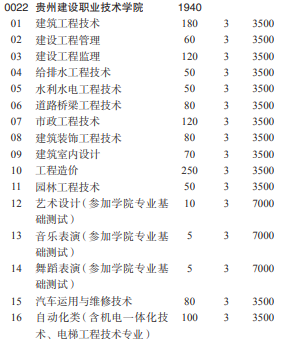 注:第一列为代码,第二列为院校专业,第三列为计划,第四列为学制,第五列为学费。