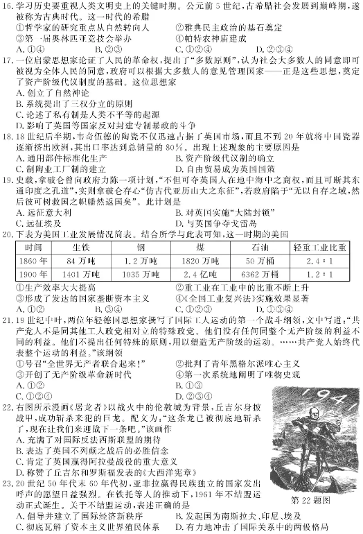 选考历史试题及答案