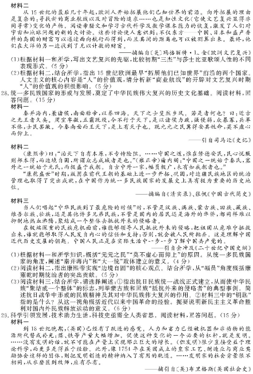 2021年1月浙江选考历史试题及答案