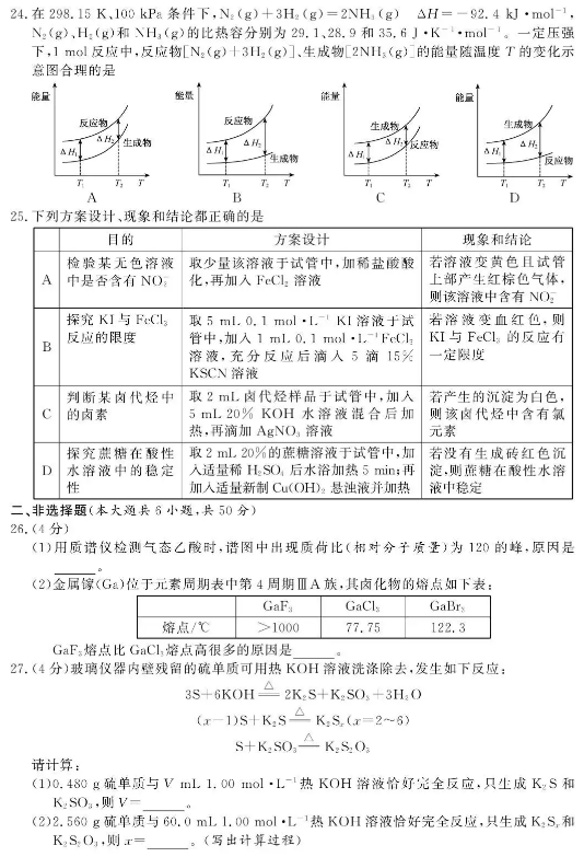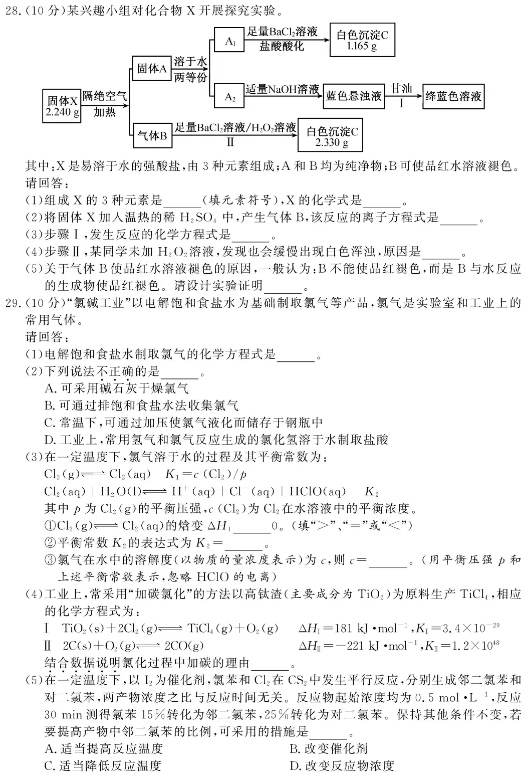 选考化学试题及答案