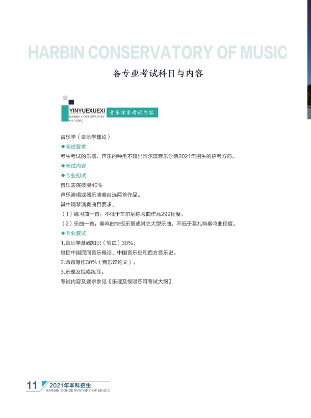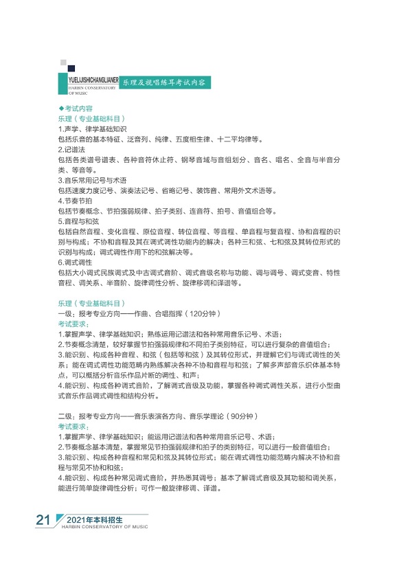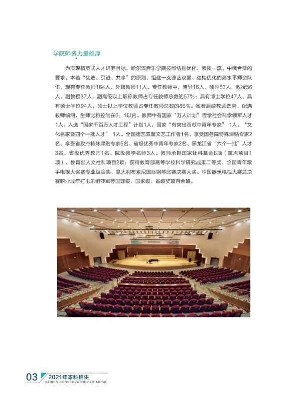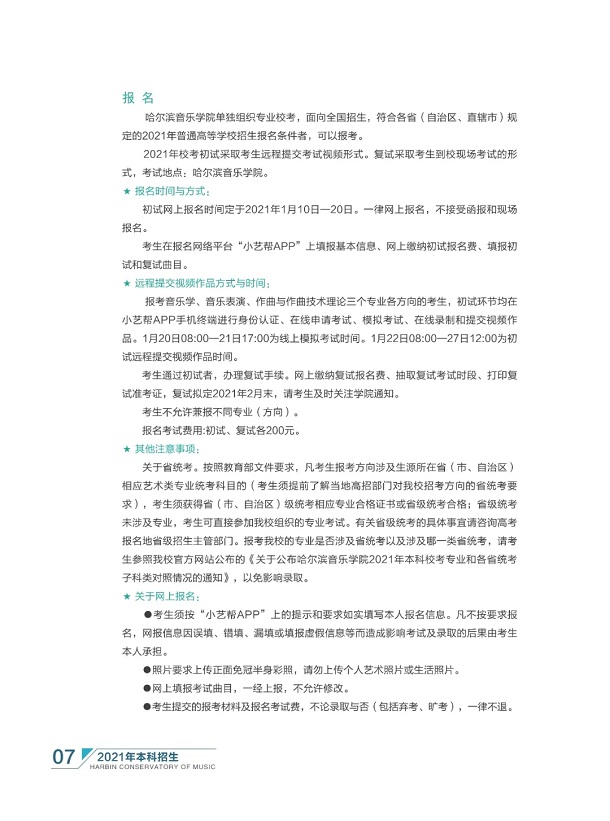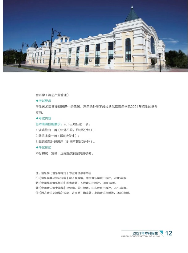 哈尔滨音乐学院2021年本科招生简章 时间:2021-01-11 08:58 招生简章 哈尔滨音乐学院2021年本科招生简章已经公布,小编在本文中整理了相关内容,快来看看吧!哈尔滨音乐学院2021年本科招生简章