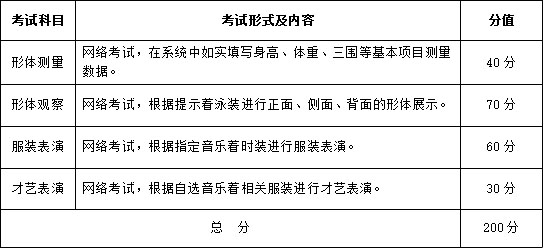 2.表演(服饰表演与推广)专业考试科目及分值(总分200分)