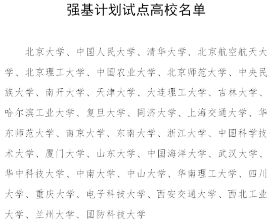 强基计划学校名单