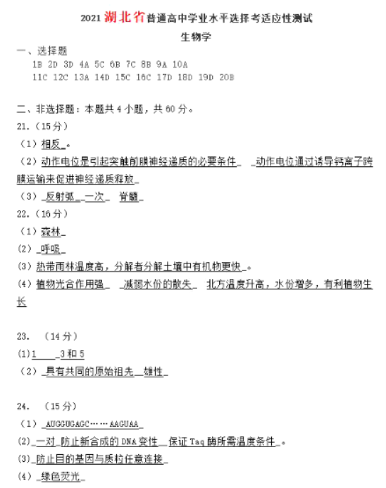 湖北高考文综试题搜索2021年湖北省八省联考生物试题及答案2021-02-02 15:15:13文/李文源2021年湖北省八省联考生物试" />