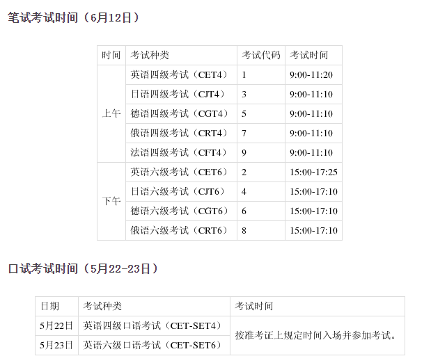 小编为大家整理了英语四六级考试时间,大家跟随小编接着往下看吧。