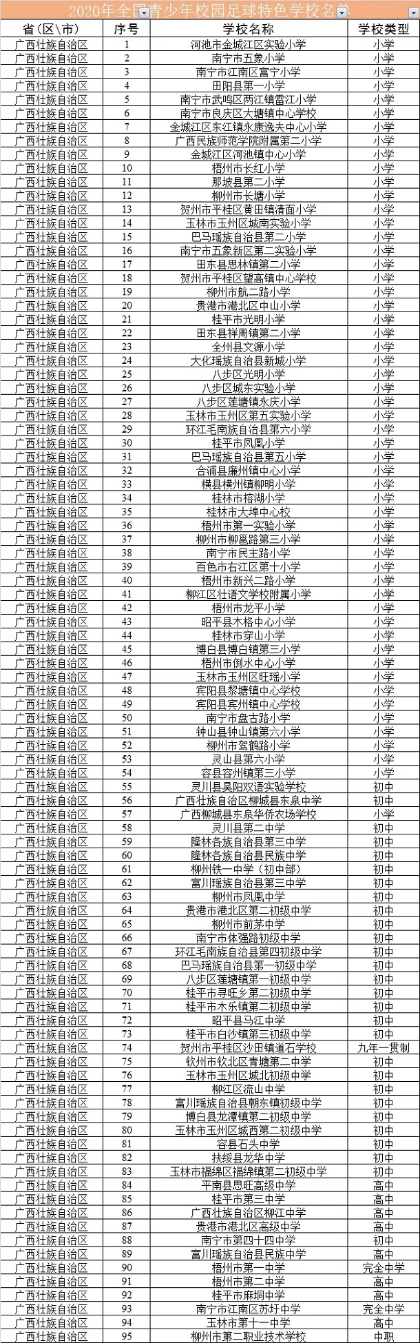 2021广西青少年校园足球特色学校名单