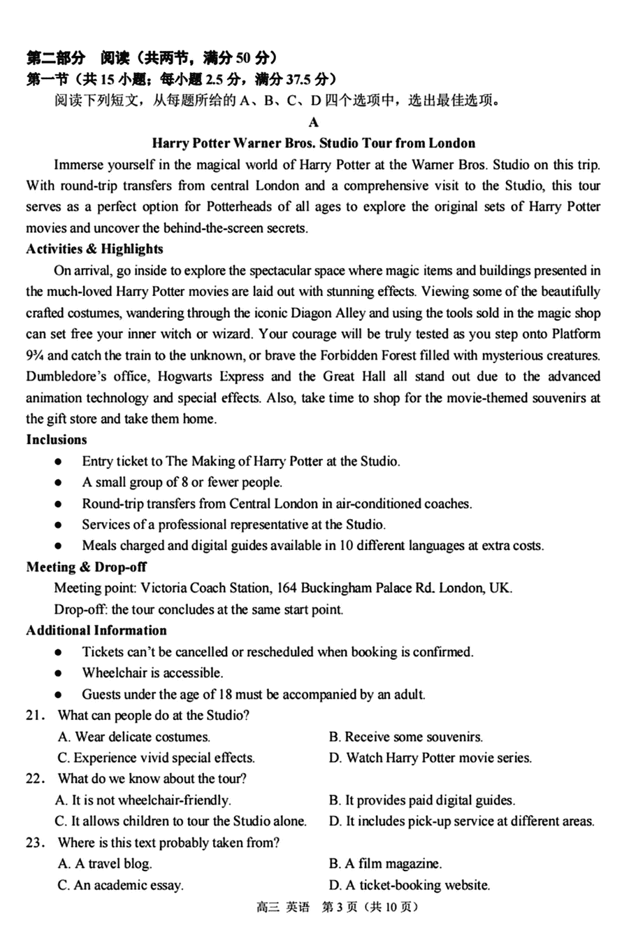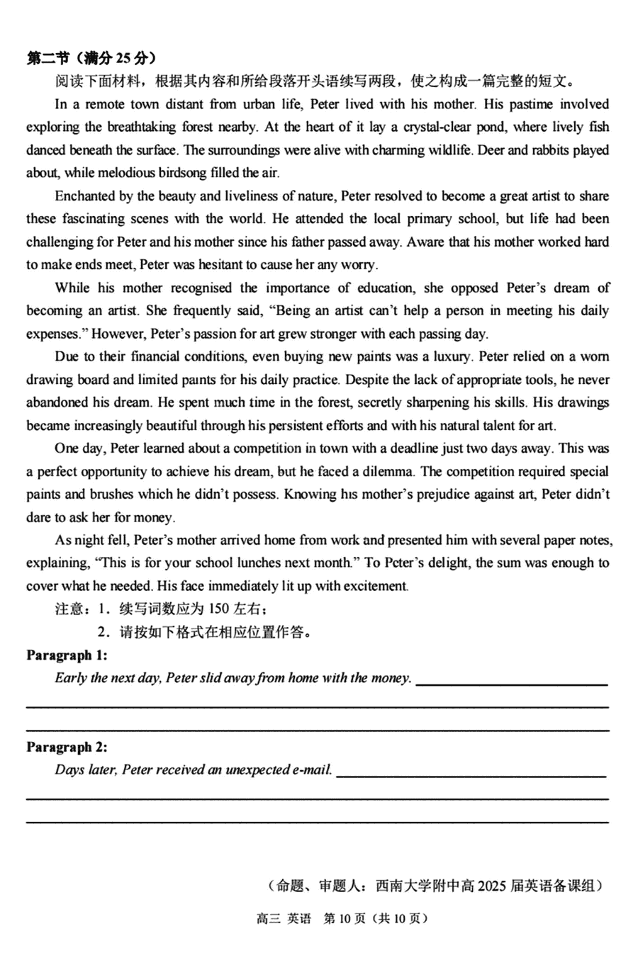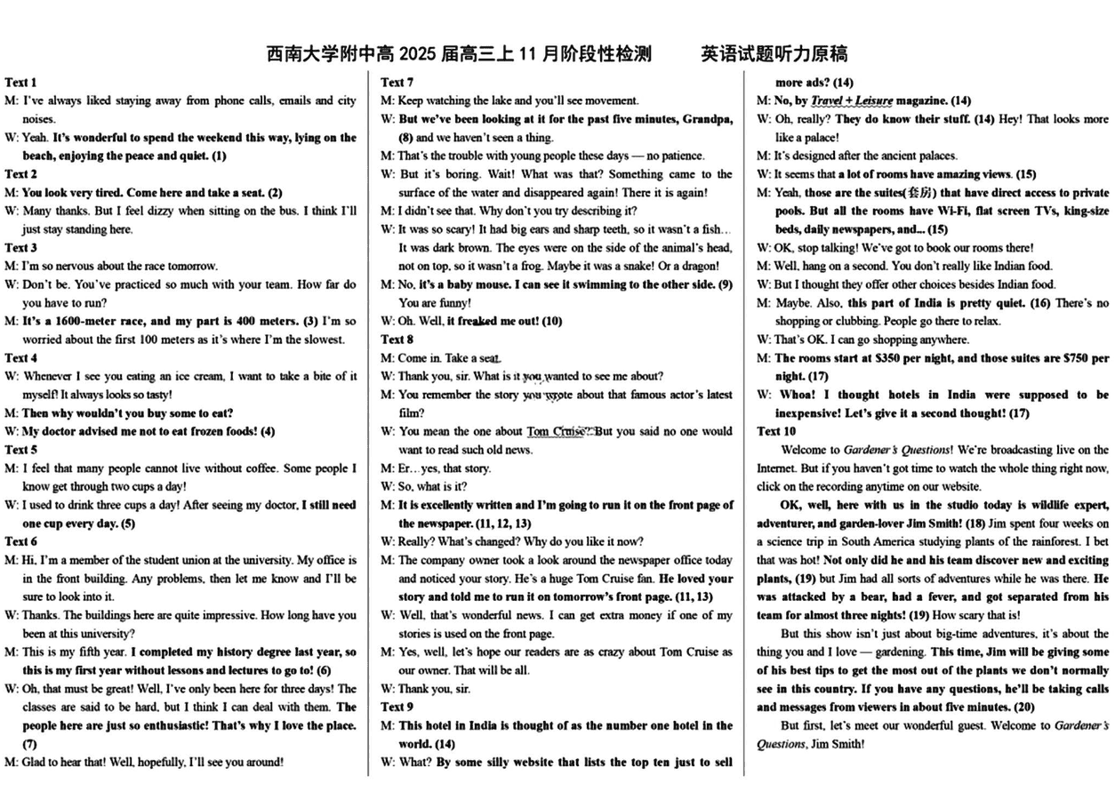 西南大学附中2025届高三上11月阶段性检测英语试题及答案