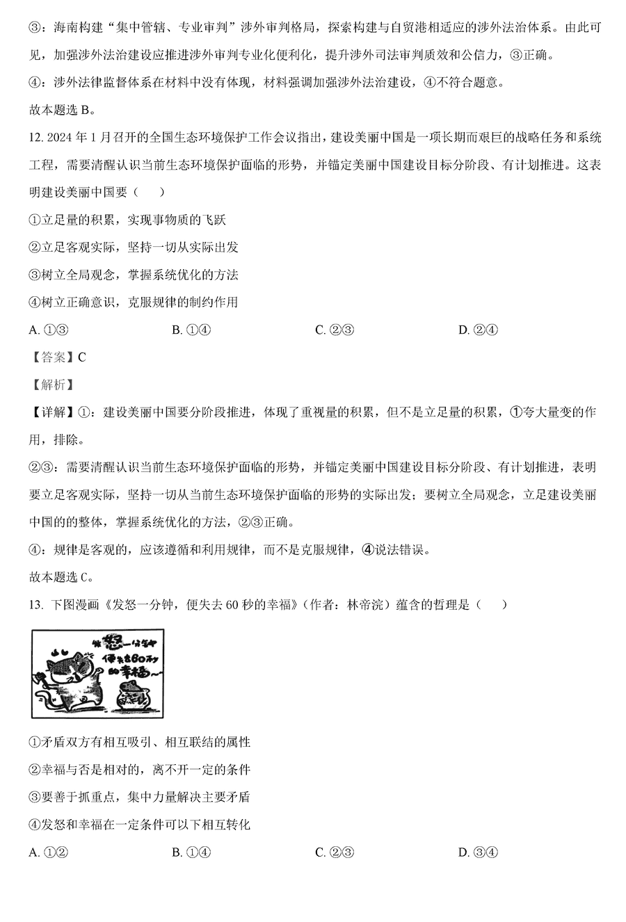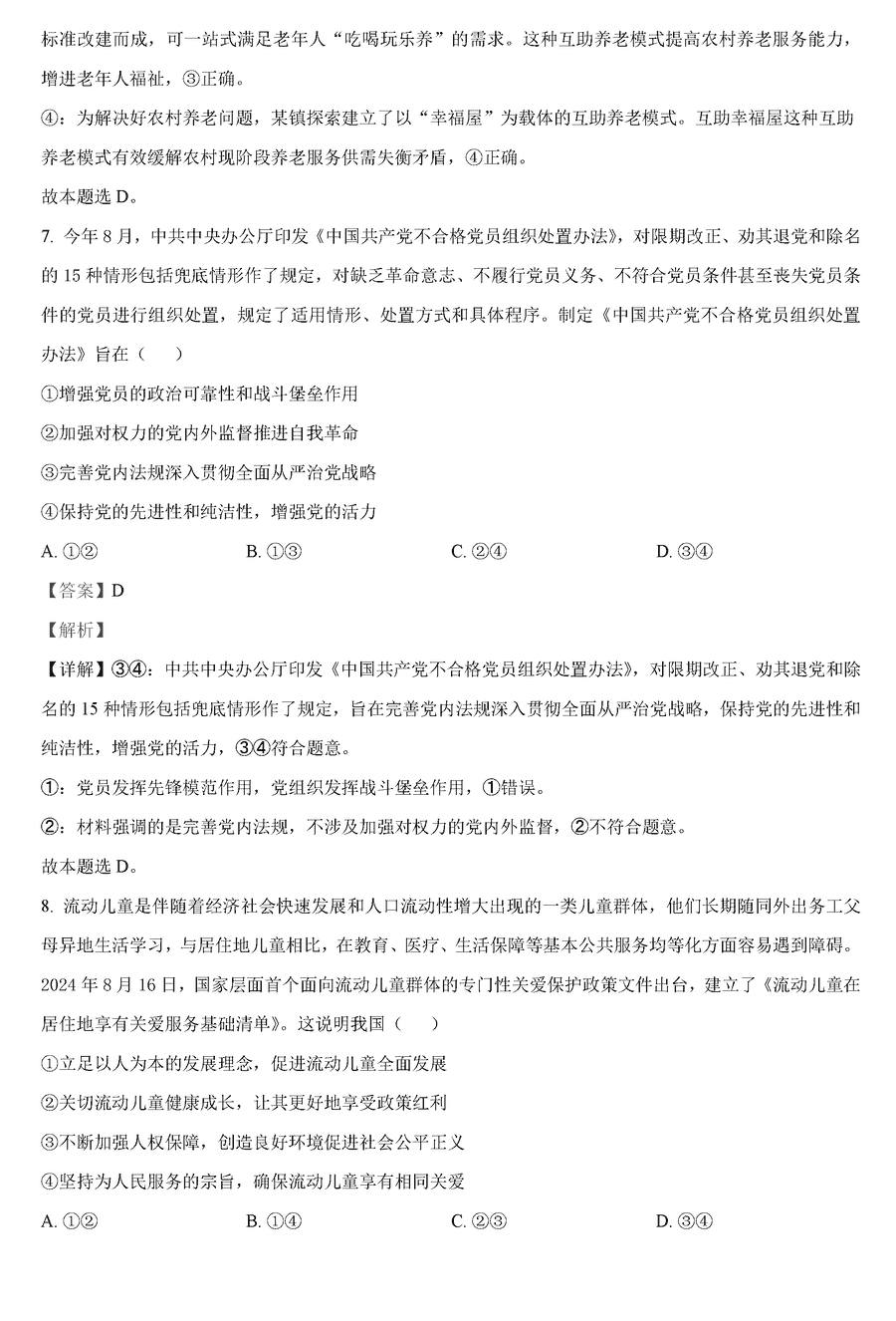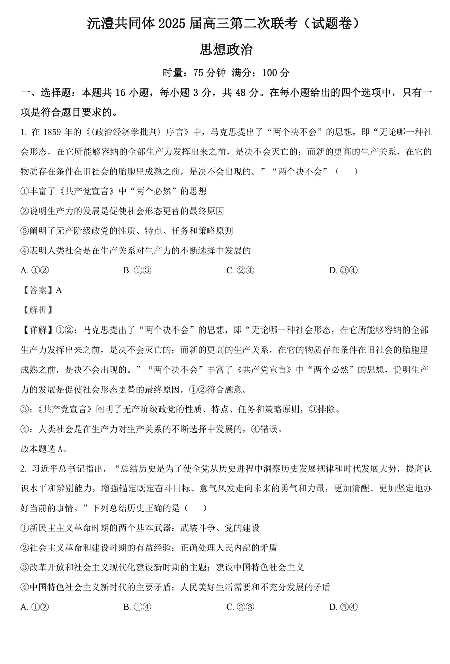 湖南沅澧共同体2025届高三第二次联考政治试题及答案