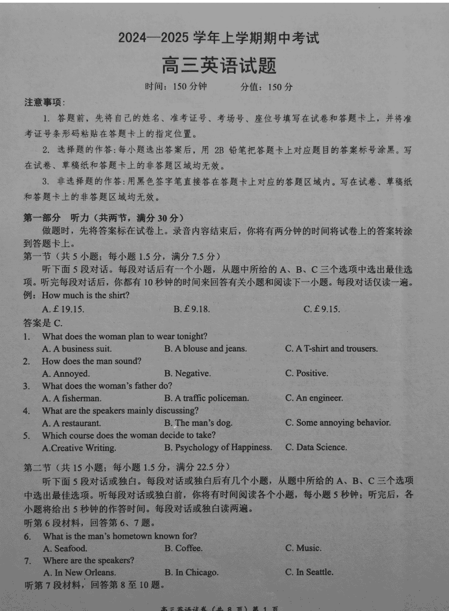 湖北省新高考协作体2025届高三期中英语考试已于近日开考,为方便考生考后及时查看考试情况,查漏补缺、弥补不足,本文整理了试题答案解析相关信息!
