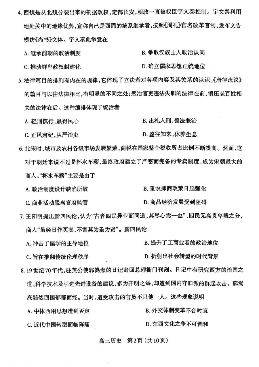 太原市2024-2025学年高三上学期期中历史试题及答案