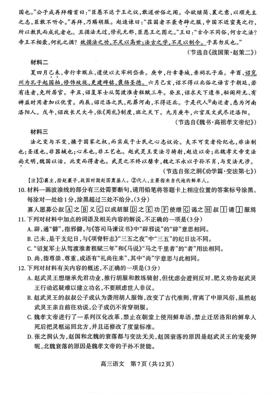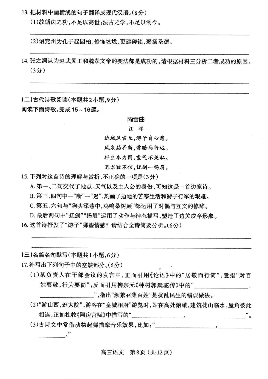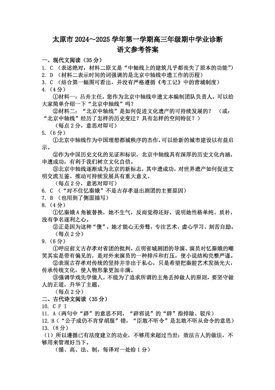 太原市2024-2025学年高三上学期期中检测语文试题及答案