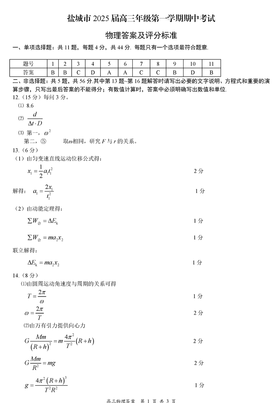 江苏盐城2025届高三上学期11月期中物理考试已于近日开考,为方便考生考后及时查看考试情况,查漏补缺、弥补不足,本文整理了试题答案解析相关信息!