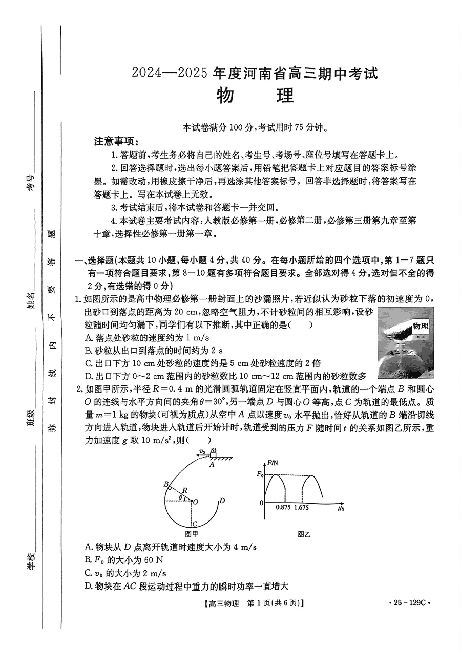 河南省金太阳2025届高三11月期中物理试题及答案 时间:2024-11-15 15:43 河南 理综试题 河南省金太阳2025届高三11月期中物理考试已于近日开考,为方便考生考后及时查看考试情况,查漏补缺、弥补不足,本文整理了试题答案解析相关信息! 汇总:河南省金太阳2025届高三期中考试试题及答案汇总 物理试题及答案解析