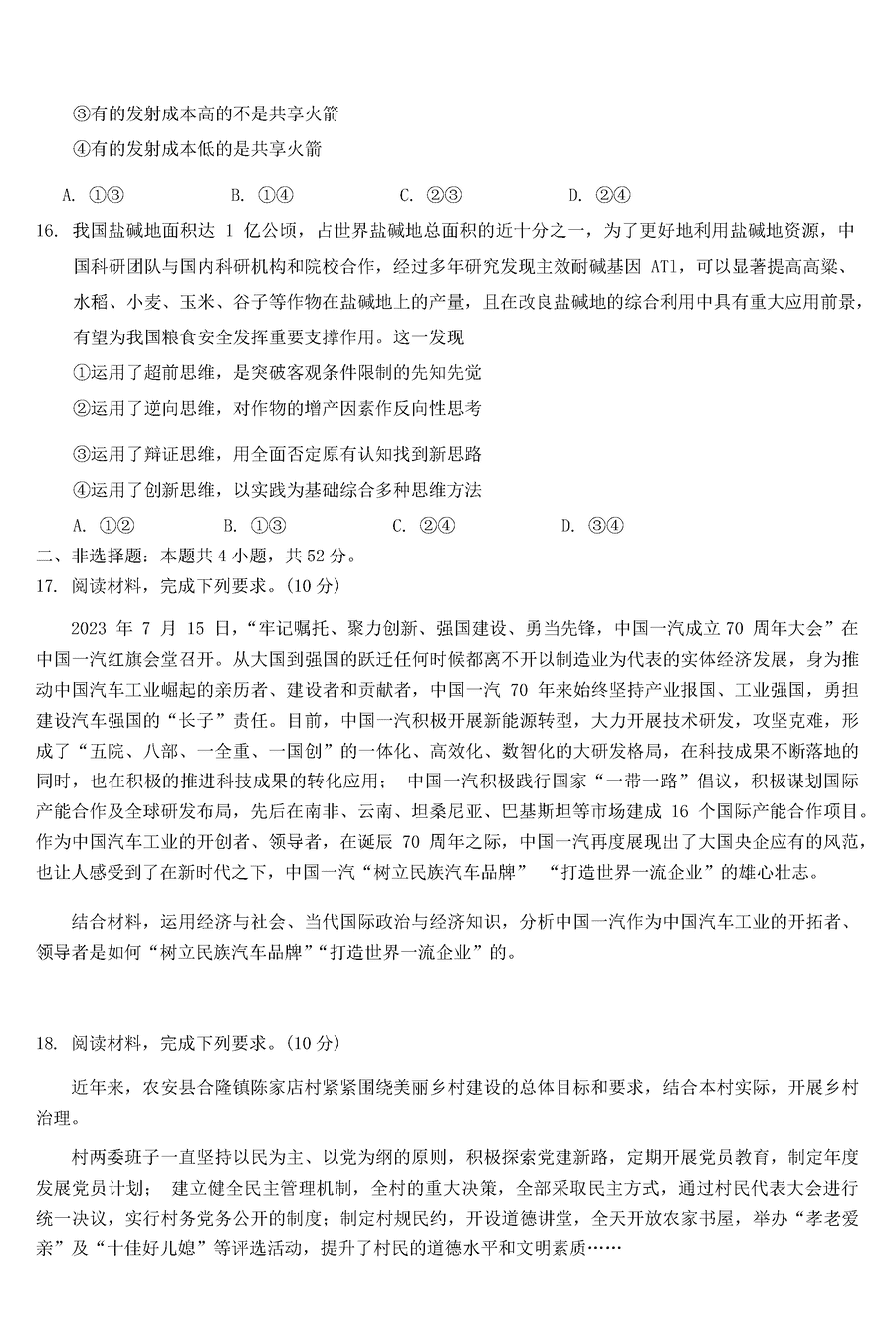 长春一模2025届高三质量检测一政治试题及答案 时间:2024-11-15 16:09 吉林 文综试题 长春一模2025届高三质量检测一政治考试已于近日开考,为方便考生考后及时查看考试情况,查漏补缺、弥补不足,本文整理了试题答案解析相关信息! 汇总:长春一模2025届高三质量检测一试题及答案汇总 政治试题及答案解析