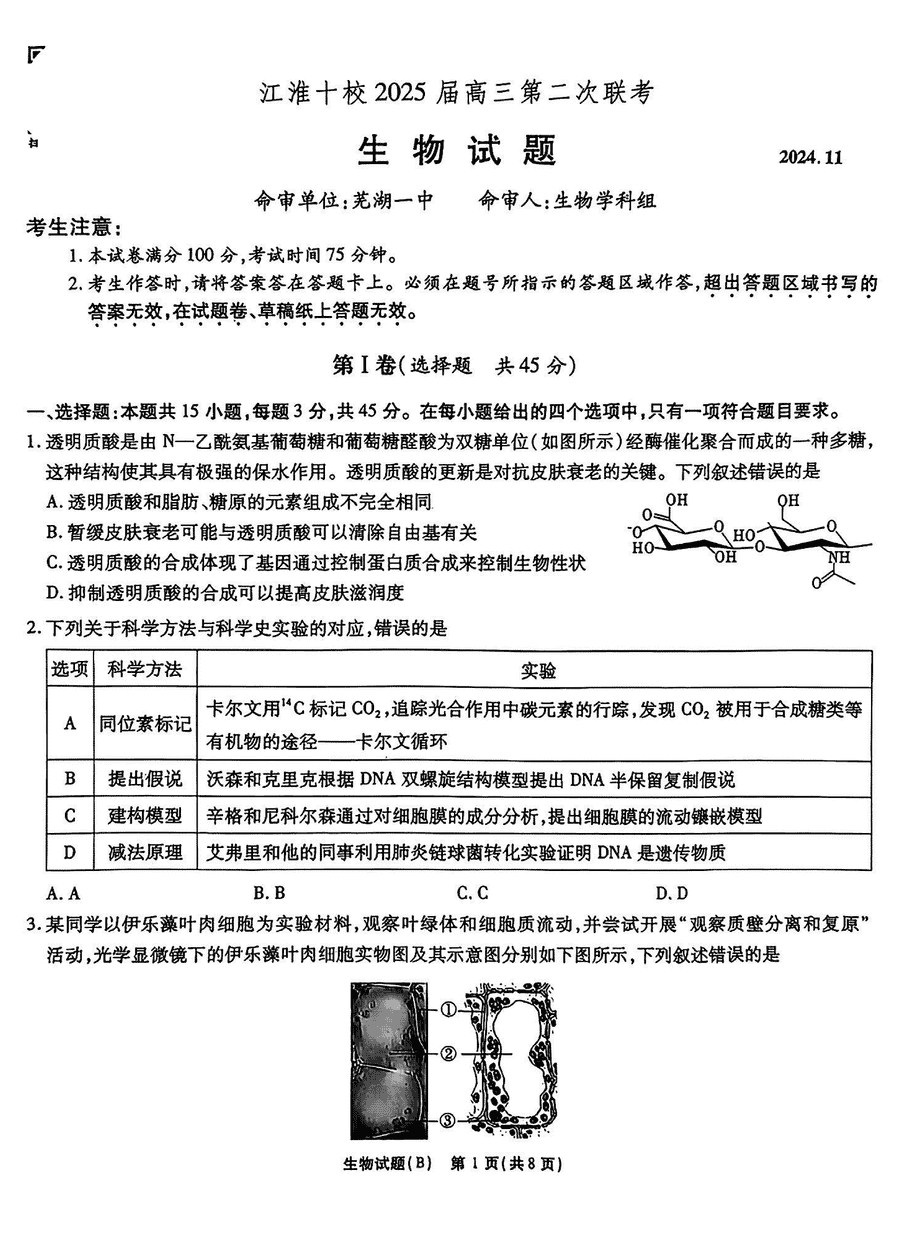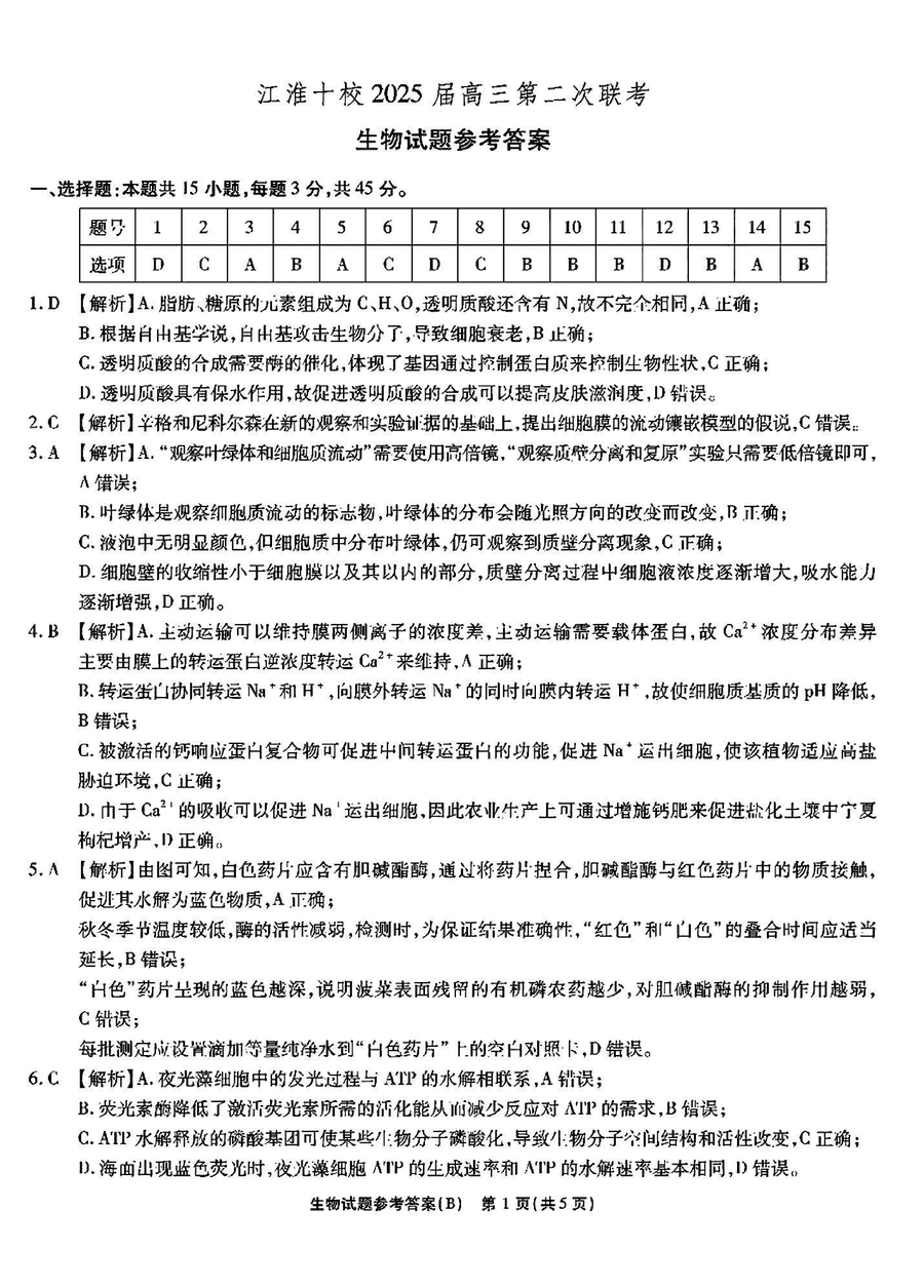 江淮十校2025届高三第二次联考生物试题及答案 时间:2024-11-16 13:47 安徽 理综试题 安徽江淮十校2025届高三第二次联考生物考试已于近日开考,为方便考生考后及时查看考试情况,查漏补缺、弥补不足,本文整理了试题答案解析相关信息! 汇总:江淮十校2025届高三第二次联考试题及答案汇总 生物试题及答案解析