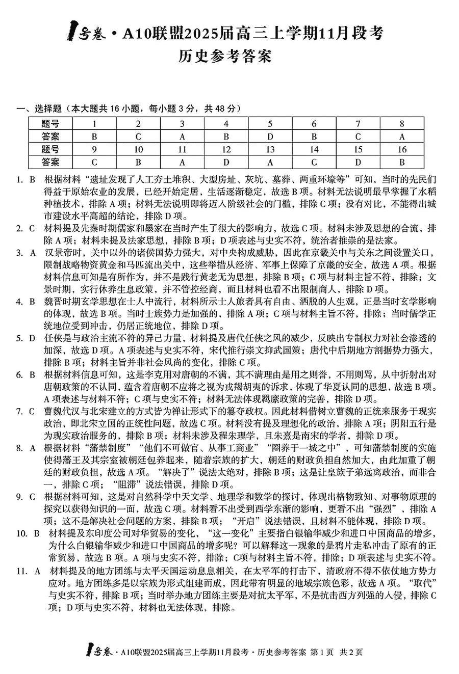 安徽A10联盟2025届高三11月段考历史考试已于近日开考,为方便考生考后及时查看考试情况,查漏补缺、弥补不足,本文整理了试题答案解析相关信息!